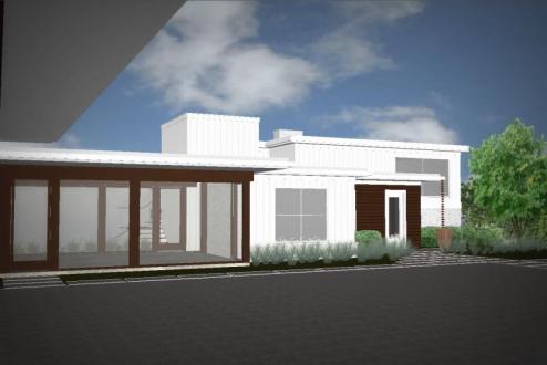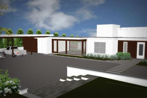 This modern home was updated and renovated by a local PhD. The home sits on a knoll west of Nashville with amazing views. Isaac immediately identifed that the carport had the best view on the property and suggested converting it into a screened porch and creating another place to park cars. The existing deck was an eyesore as you approached from the front and is being reworked into more of an architectural element, rather than a typical post and beam solution. It will have an underdrain system so that rainwater, etc. doesn't fall into the space below, which will house a spa and provide dry shade for entertaining. A new pool with a tiled feature wall housing a sheer descent waterfall and a swim jet system is being added. The arrival court is being re-worked as well. All foundation plantings were overgrown and removed and a more modern planting aesthetic is being implemented with grasses and specimen trees, and oversized bluestone pavers. The project is an intense collaboration with architect Steve Durden.