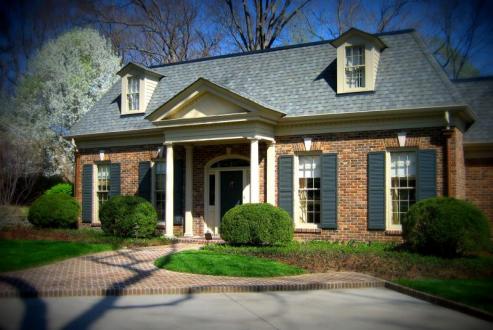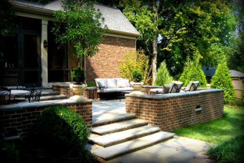The architect approached us to resolve the transition from the proposed screen porch addition to the existing drive. A door from the garage to the outdoors was complicating the transition from the porch to existing grade. Isaac suggested the door be relocated, the remaining aperture be bricked up, and introduced an outdoor dining area with a built-in grill. Large, overgrown trees were removed to open up the backyard, with screen plantings added to augment privacy. Large Sweetbay Magnolias were brought in to instantly transform this porch and terrace into what the owner describes as a “constant vacation getaway.” The second phase of this project entailed the removal of the oversized asphalt drive and replacement with a more purposeful and useable one made of sand-blasted concrete. Phase two also included the addition of an arrival court with a new brick entry walk and curb. Unsightly plant materials were removed, large swathes of groundcover were introduced, and the arrival court was punctuated with groupings of Hydrangea and small flowering trees.