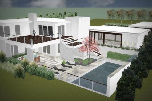 This modern home was updated and renovated by a local PhD. The home sits on a knoll west of Nashville with amazing views. Isaac immediately identifed that the carport had the best view on the property and suggested converting it into a screened porch and creating another place to park cars. The existing deck was an eyesore as you approached from the front and is being reworked into more of an architectural element, rather than a typical post and beam solution. It will have an underdrain system so that rainwater, etc. doesn't fall into the space below, which will house a spa and provide dry shade for entertaining. A new pool with a tiled feature wall housing a sheer descent waterfall and a swim jet system is being added. The arrival court is being re-worked as well. All foundation plantings were overgrown and removed and a more modern planting aesthetic is being implemented with grasses and specimen trees, and oversized bluestone pavers. The project is an intense collaboration with architect Steve Durden.